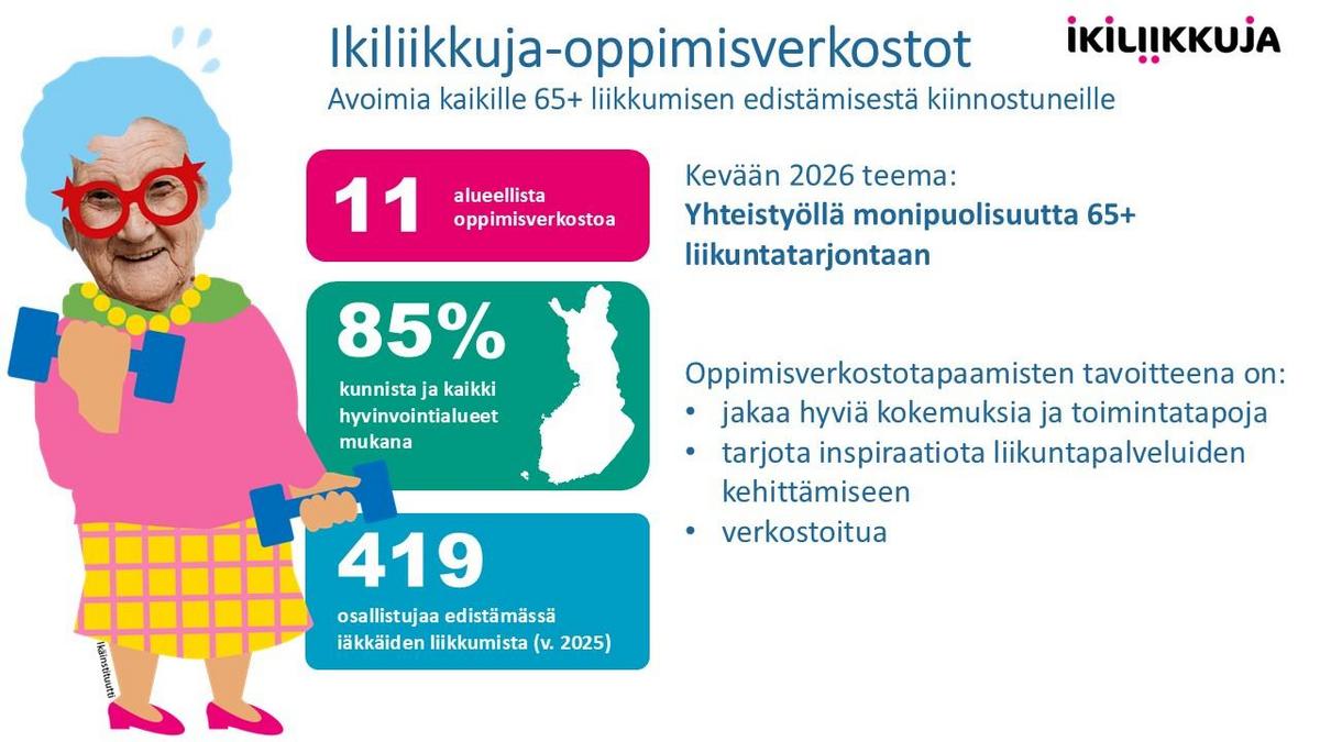 Liity mukaan verkostoon: https://www.ikiliikkuja.fi/ikiliikkuja/liity-alueelliseen-oppimisverkostoon/